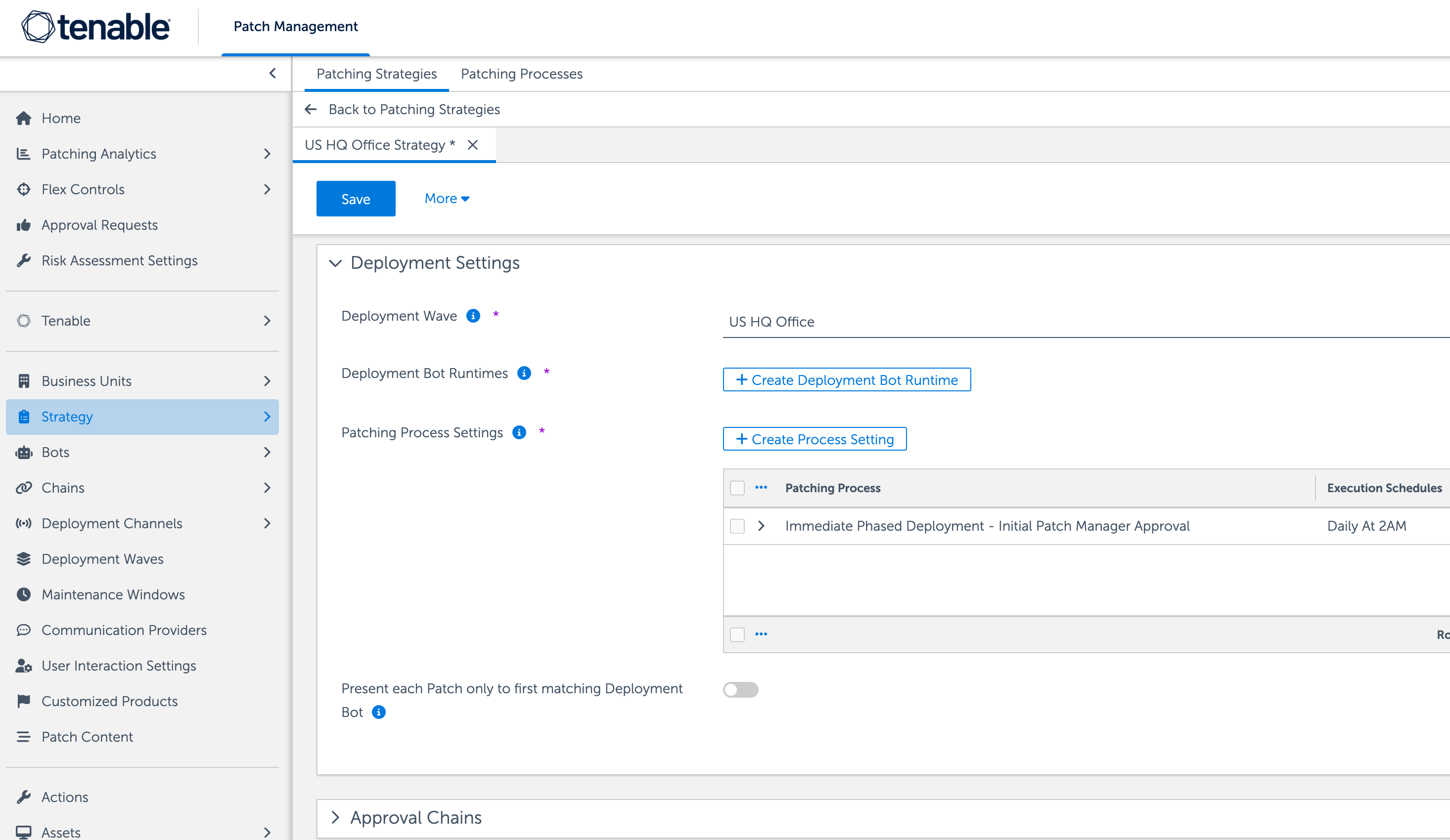Tenable Patch Management shifts how IT teams tackle remediation. Via autonomous patching, organizations can set and forget patch deployments rather than patching individually.