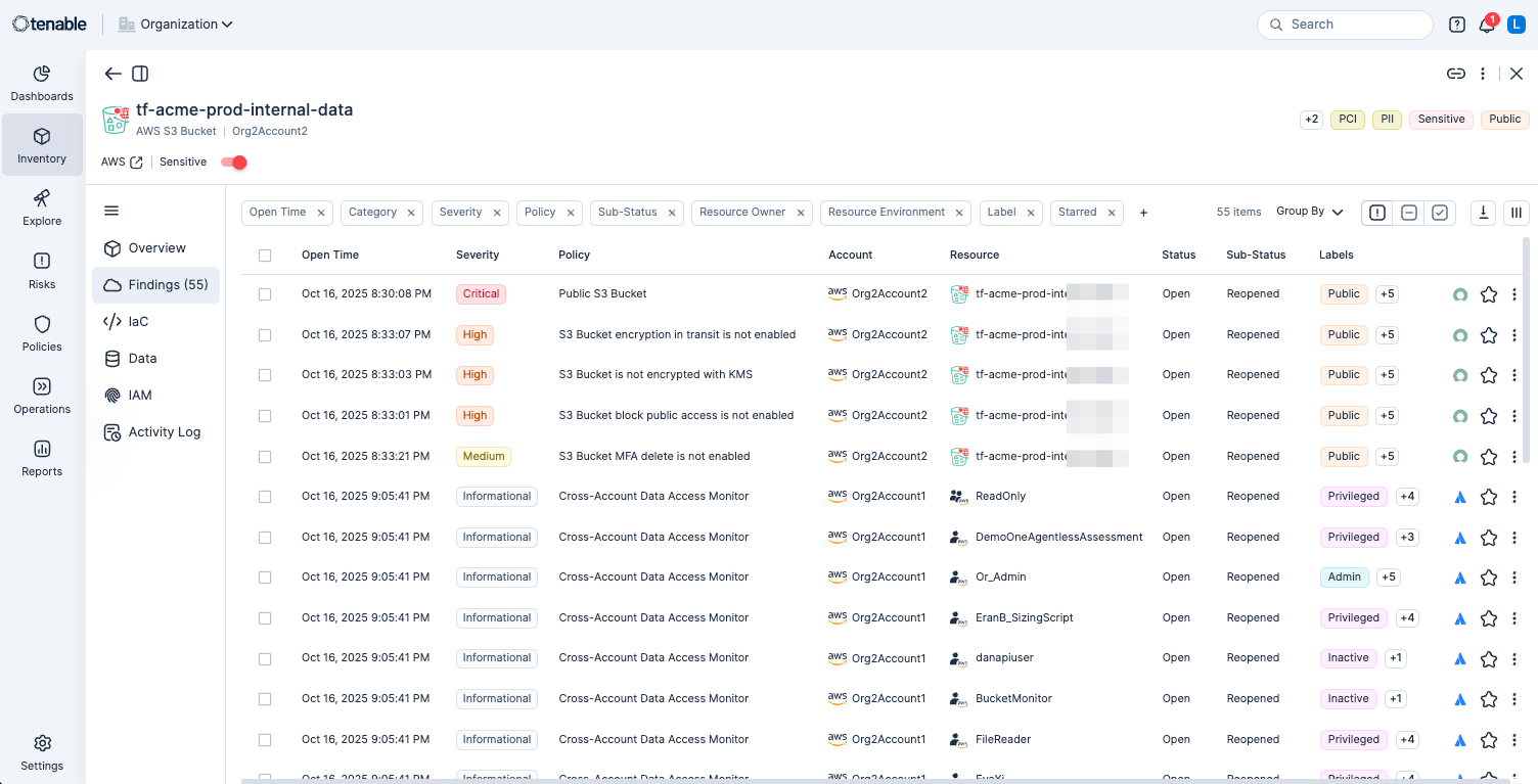 Tenable ensures the safety of your workloads, employing robust encryption and access controls to safeguard sensitive data. It reins in excessive permissions and granting of long-standing access. Tenable protects your sensitive data by reducing the blast radius in the event of a breach. For more information on how Tenable Cloud Security ensures data protection and privacy of your unique cloud environment, please contact your Tenable representative.