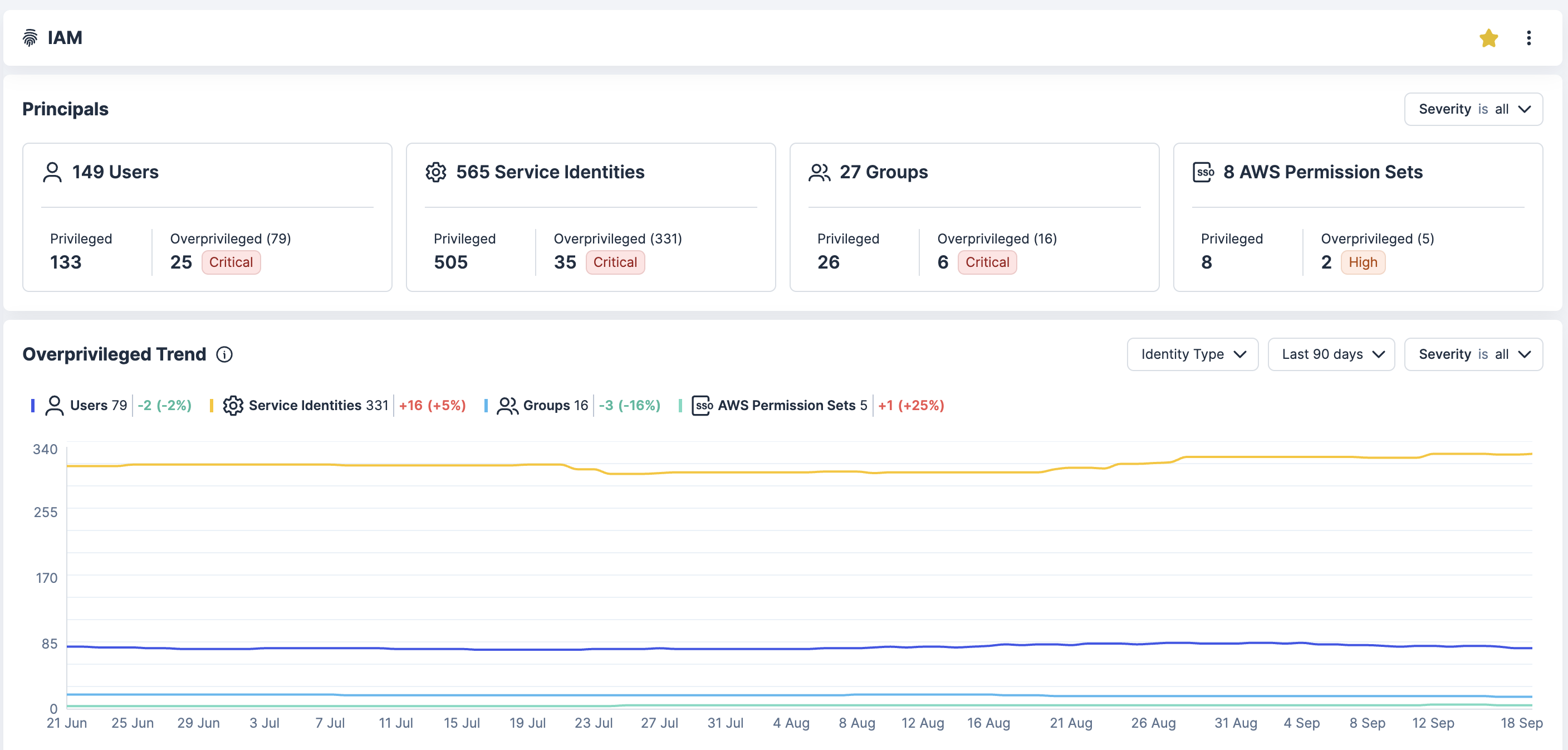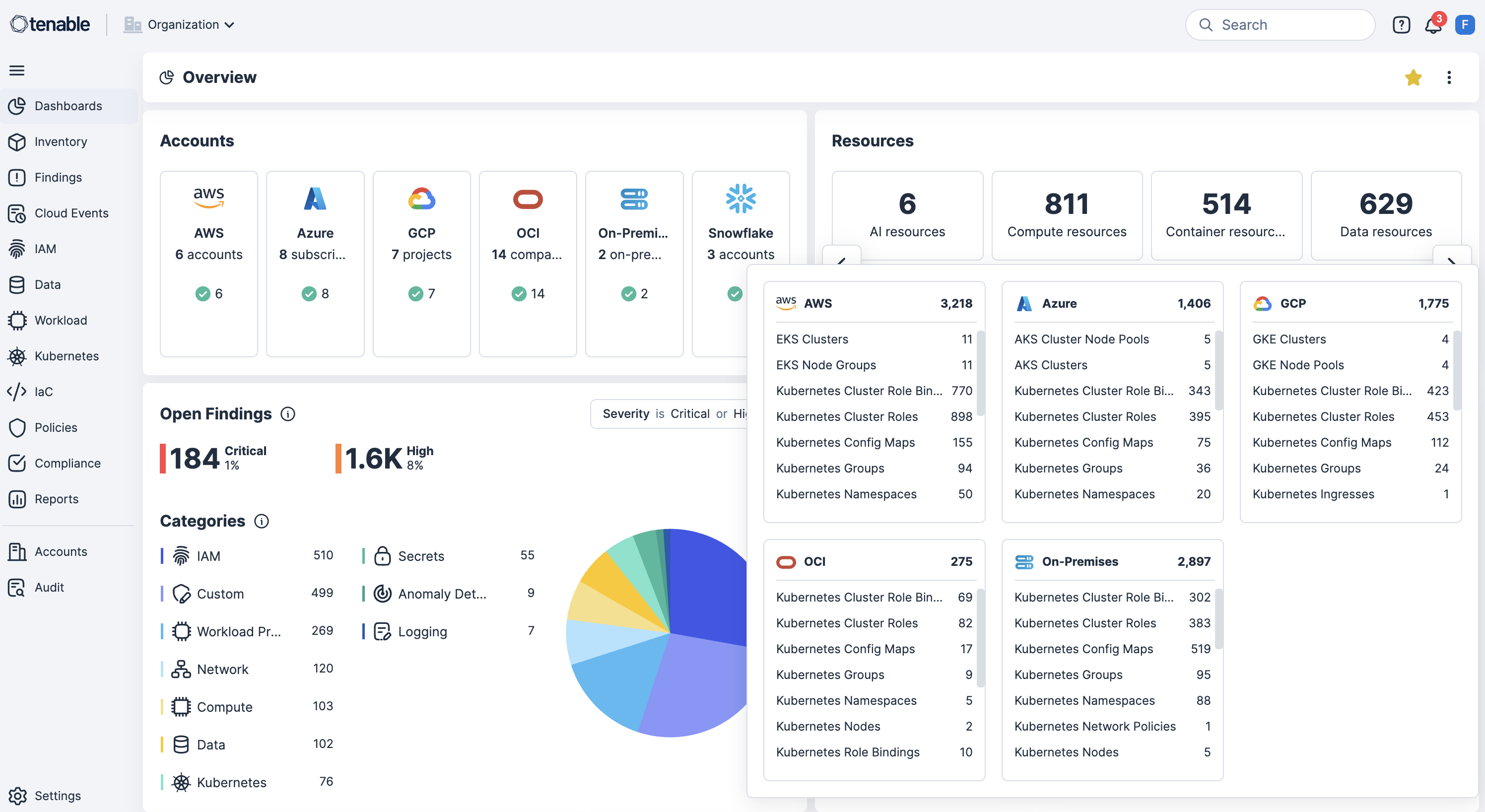 Tenable Cloud Security integrates with numerous IdPs including Entra ID, Google Workspace, Okta, OneLogin and Ping Identity. These IdP integrations reveal a complete inventory of federated users and groups associated with your cloud accounts and provide permission analysis and identity intelligence.