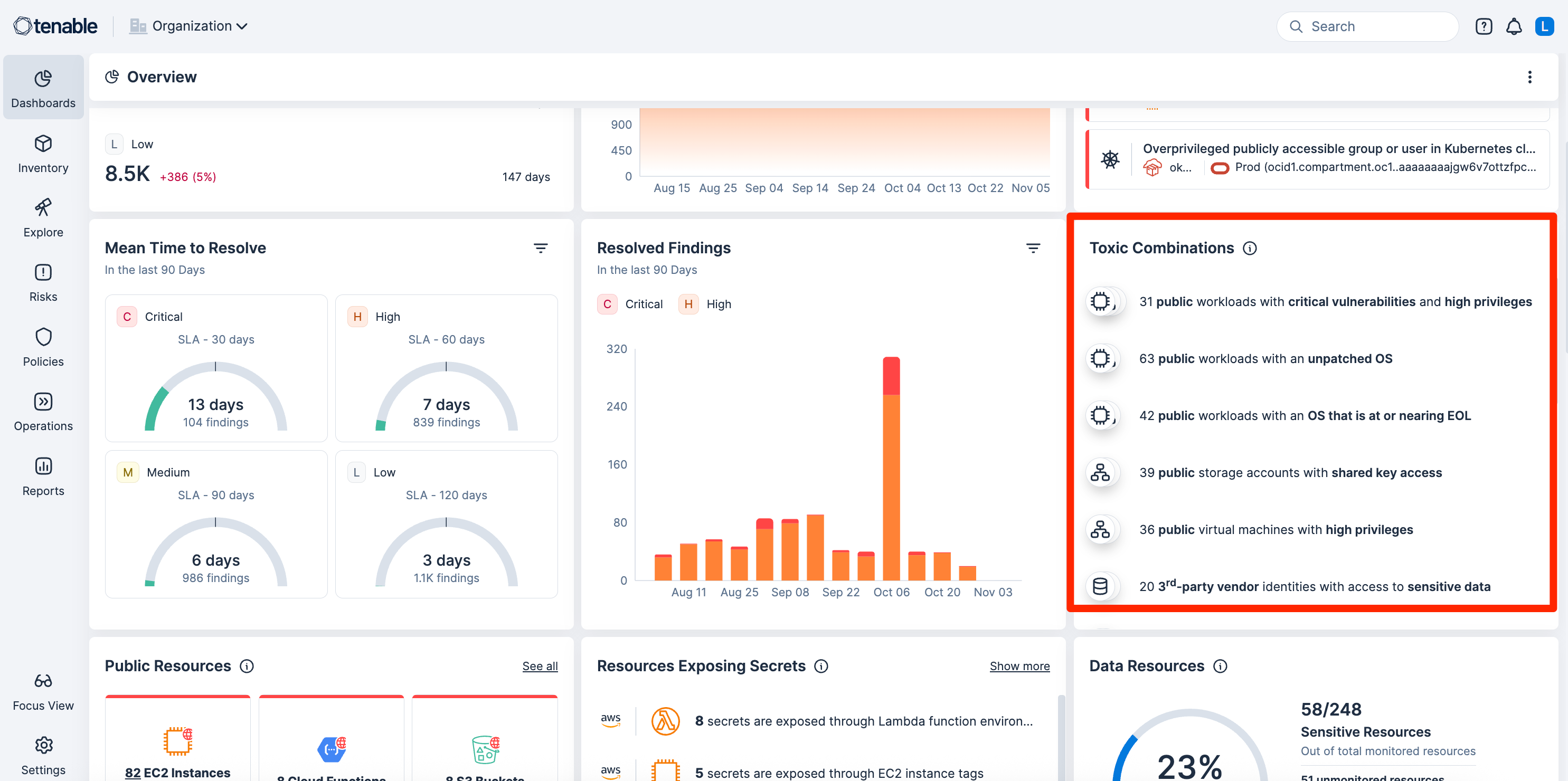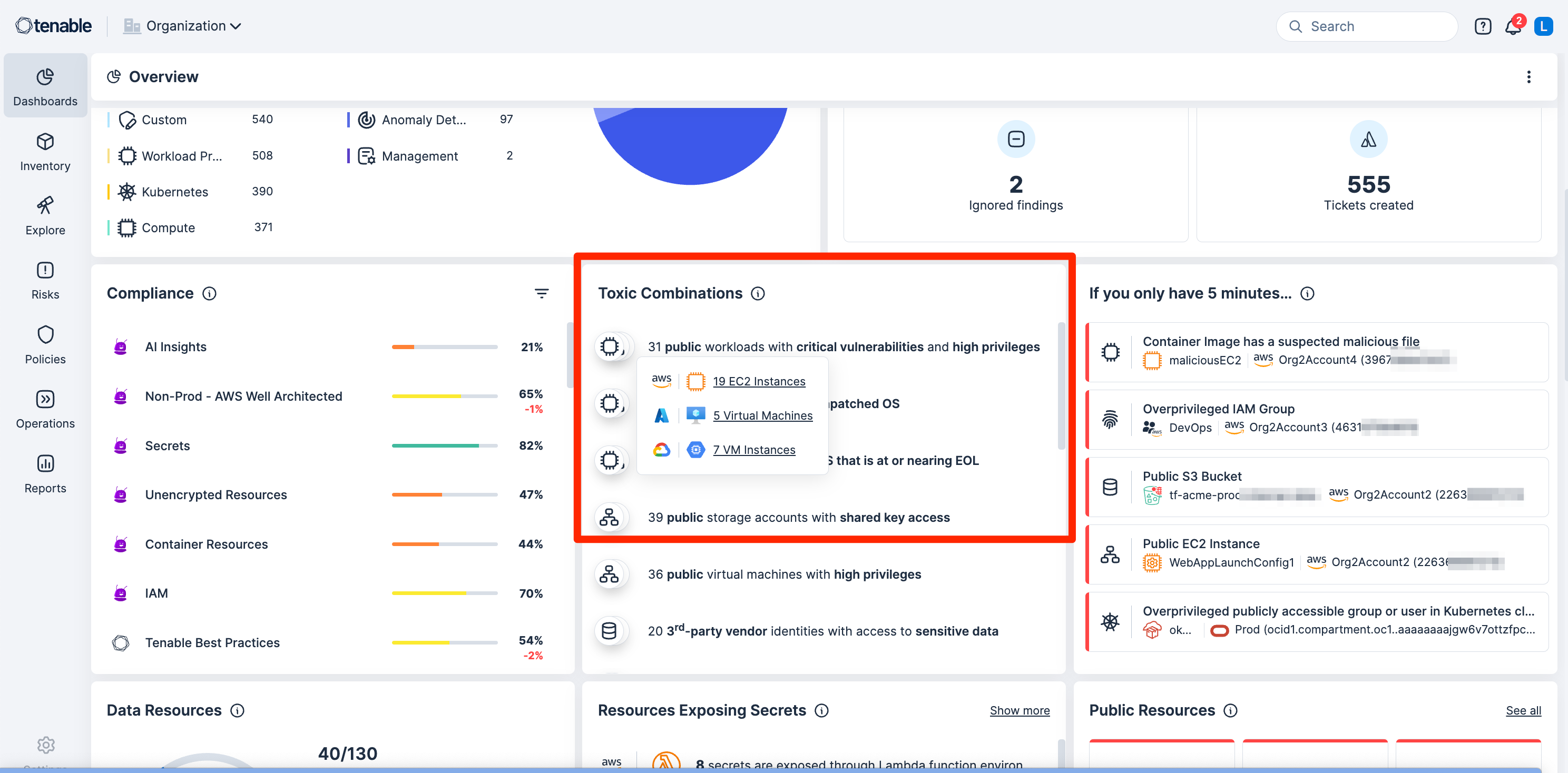 Continuously analyze cloud assets to uncover hidden risks and toxic combinations. Use Tenable One Exposure Management to get full-stack context to prioritize cloud risks based on impact.