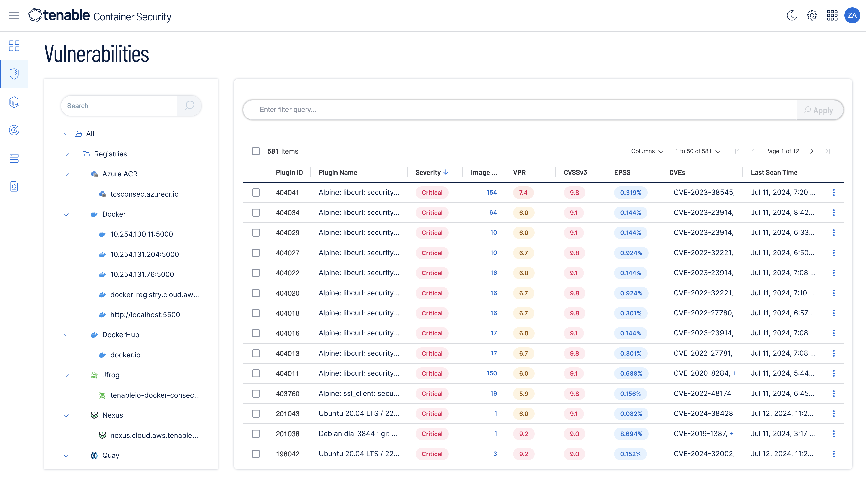 - Vulnerability prioritization: See the risk in each IT asset and container image. Quickly identify which vulnerabilities to fix first with context-based intelligence and insight from Tenable Research.