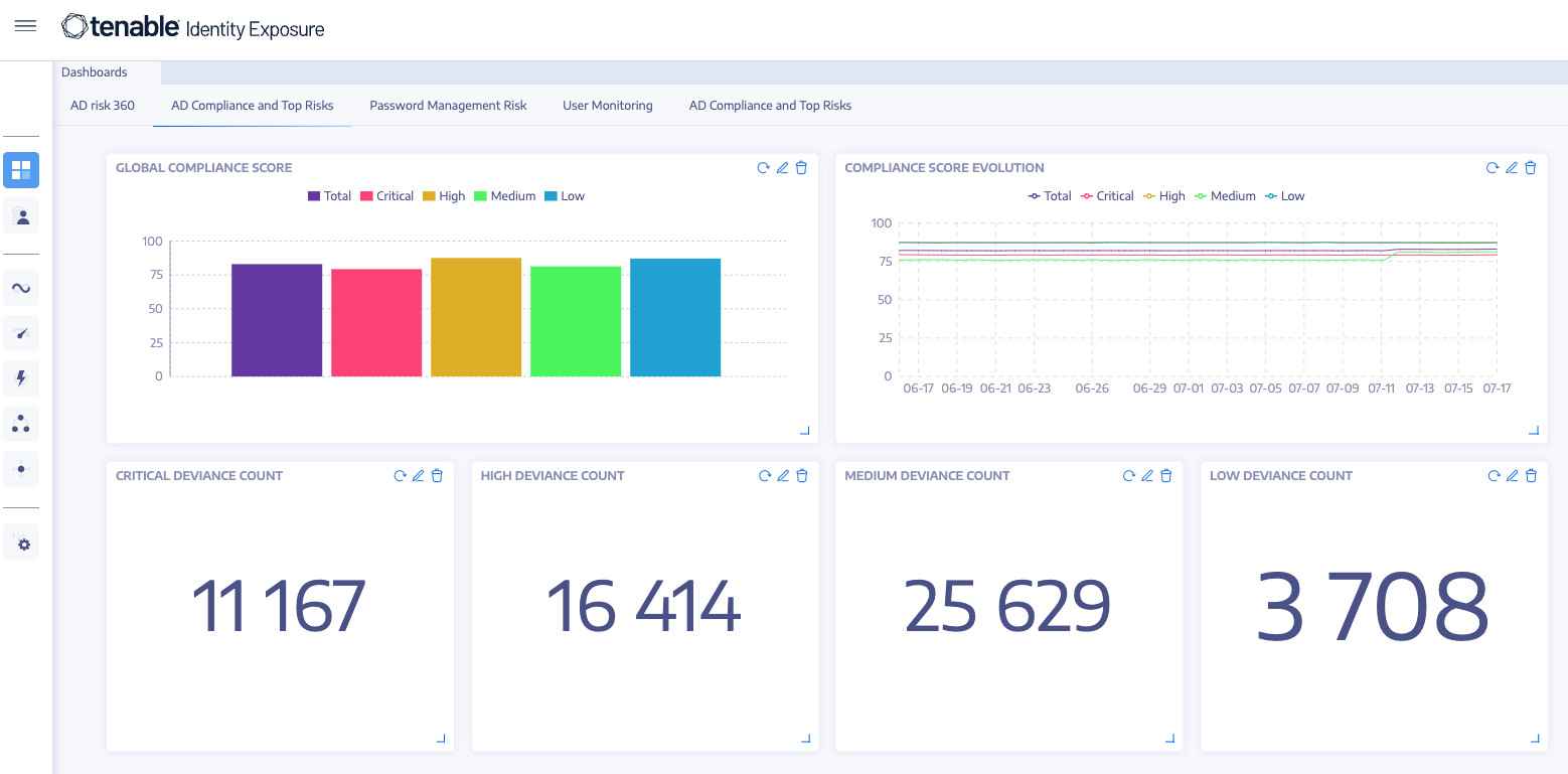By proactively detecting and remediating misconfigurations, over-privileged accounts, and identity attack paths, Tenable Identity Exposure helps organizations maintain security compliance while reducing the risk of credential-based breaches.