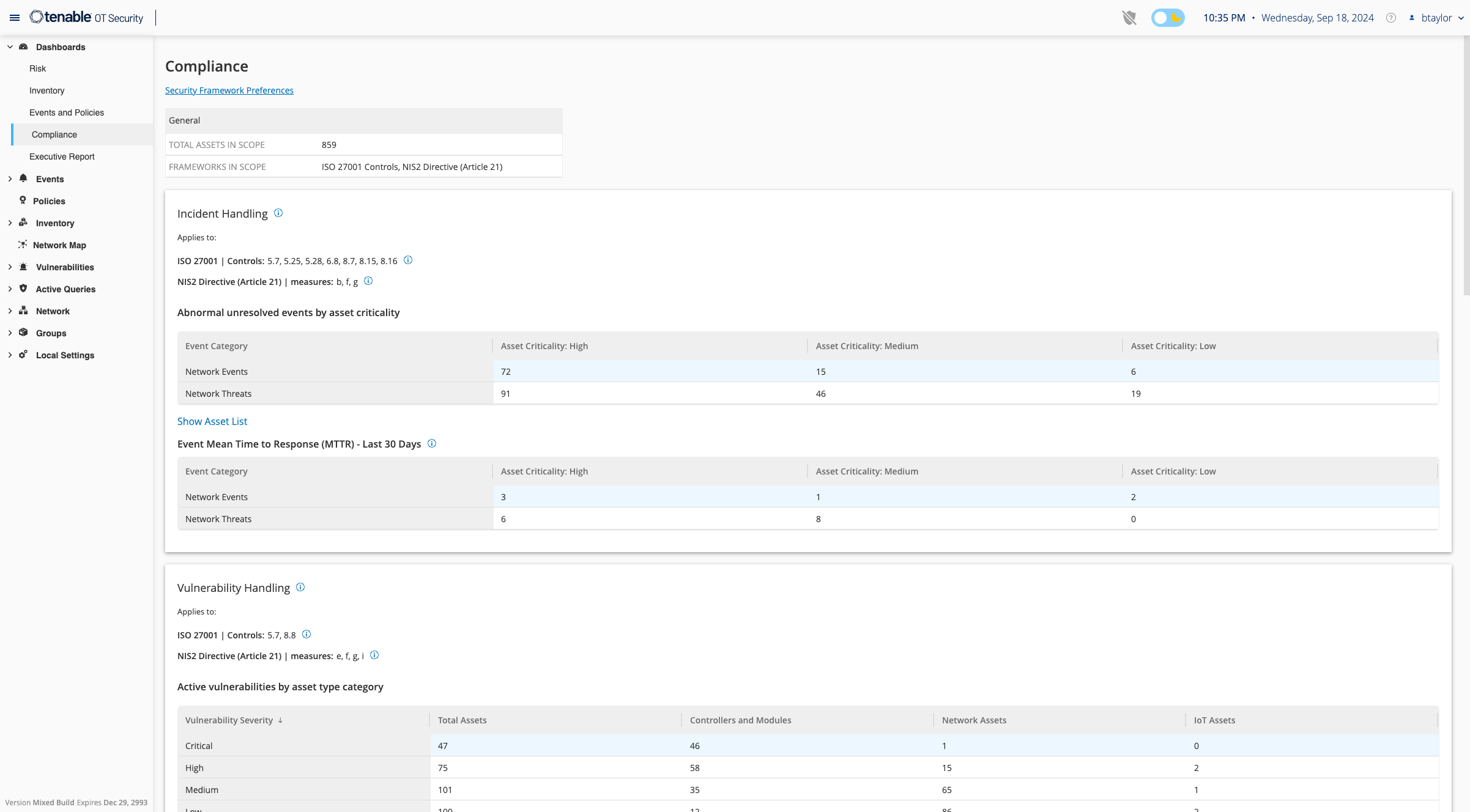 Transform your compliance process into a competitive advantage. Simplify compliance management and enhance incident response to help security teams mitigate risk and stay ahead in an evolving regulatory landscape. Easily map your OT security posture to the latest global frameworks and standards in a single dashboard for real-time visibility into compliance status.